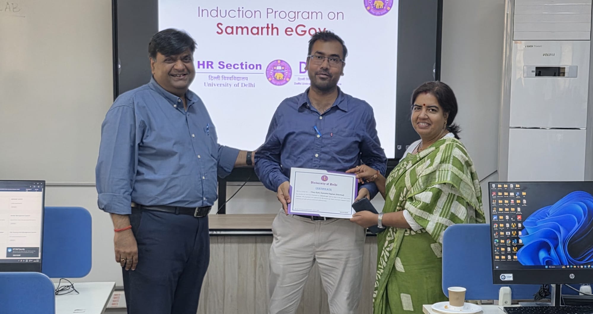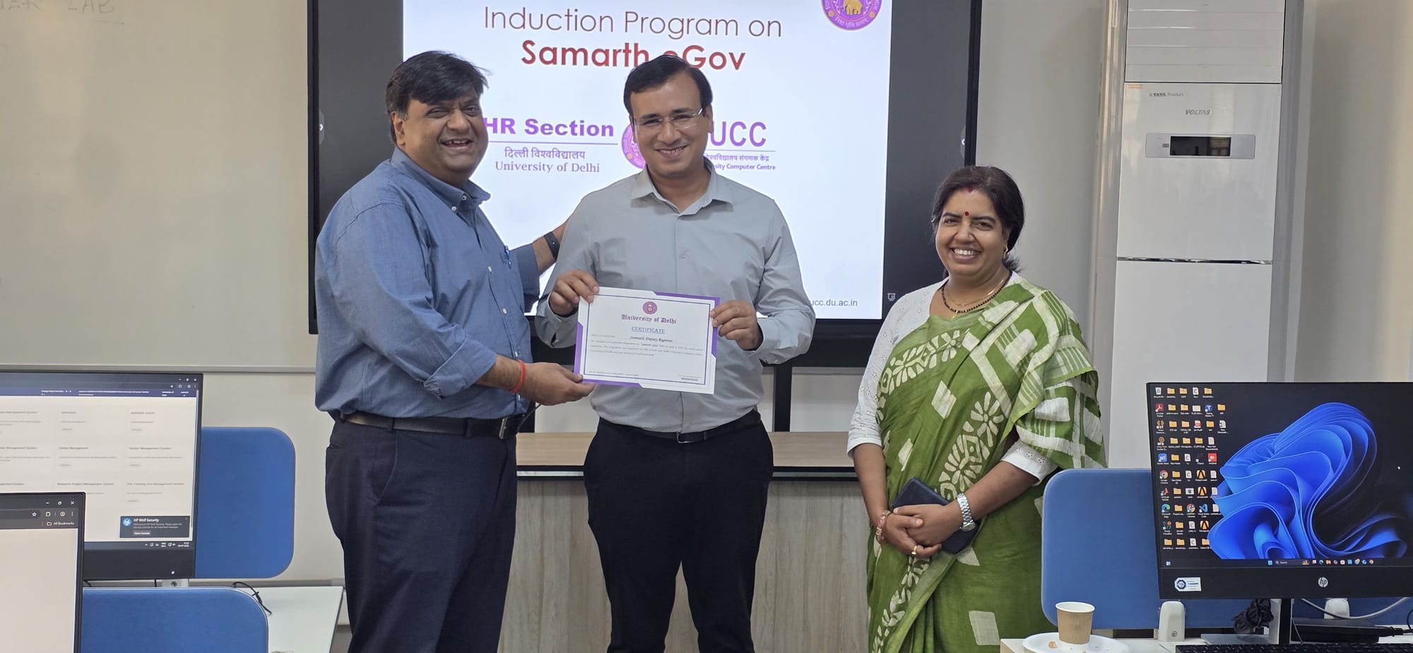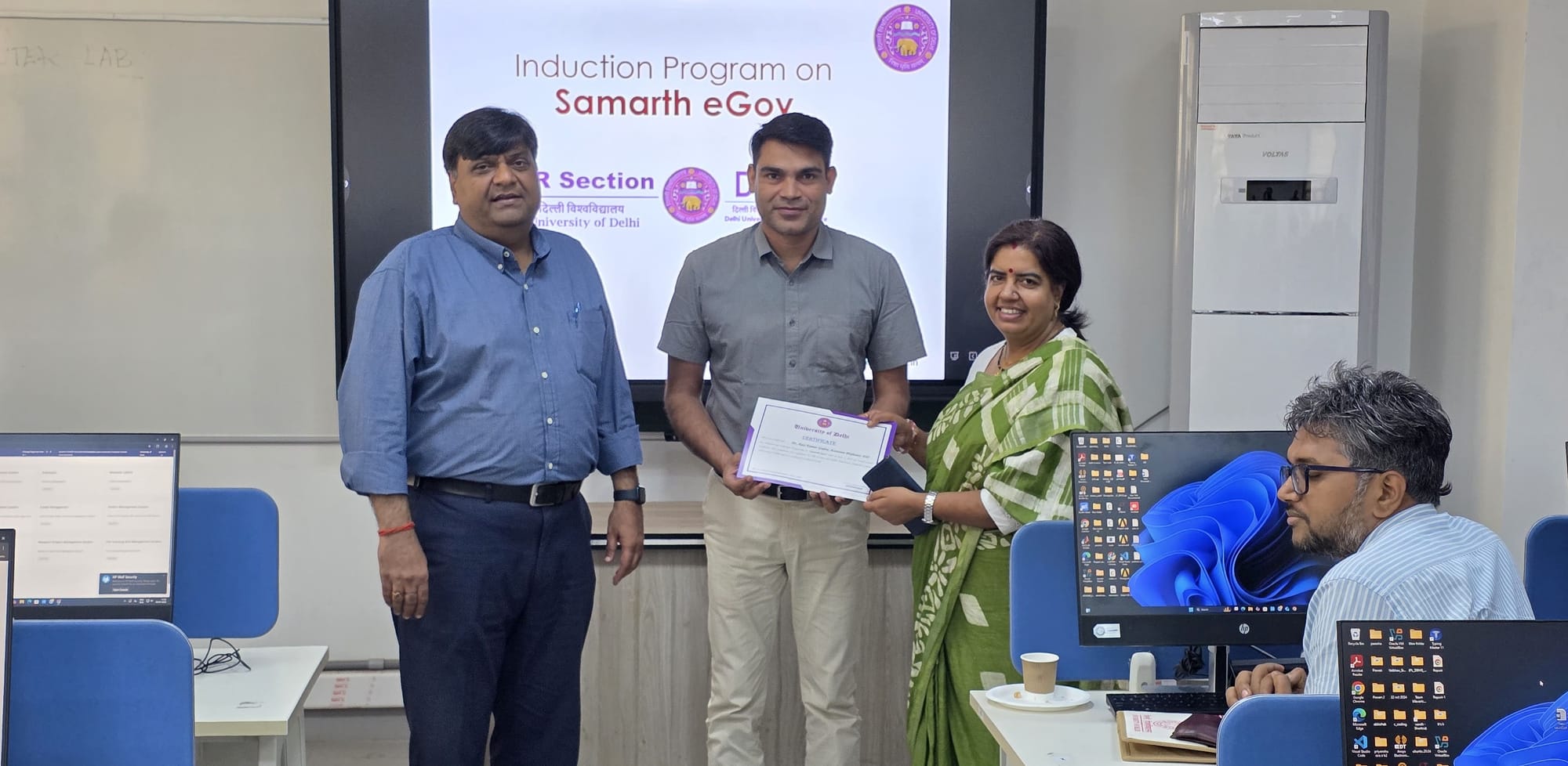 The HR Section, and the Delhi University Computer Centre organized an induction programme on Samarth eGov. The session was conducted for newly appointed Junior Engineers, Assistant Engineers, Deputy Registrars, and Assistant Professors from the Faculty of Technology to familiarize them with the university’s digital administrative platform.