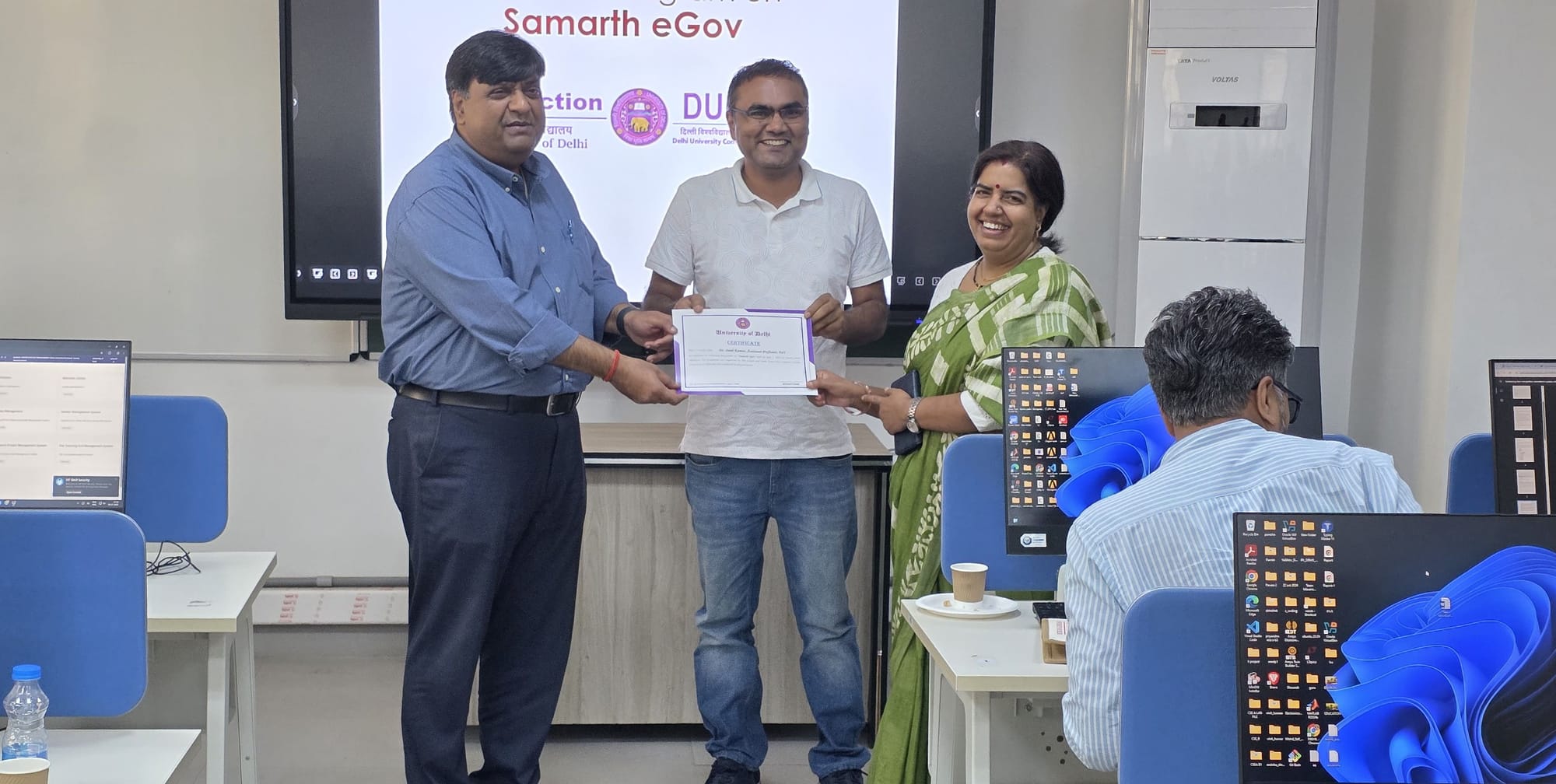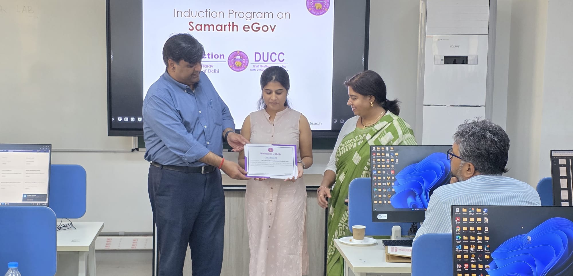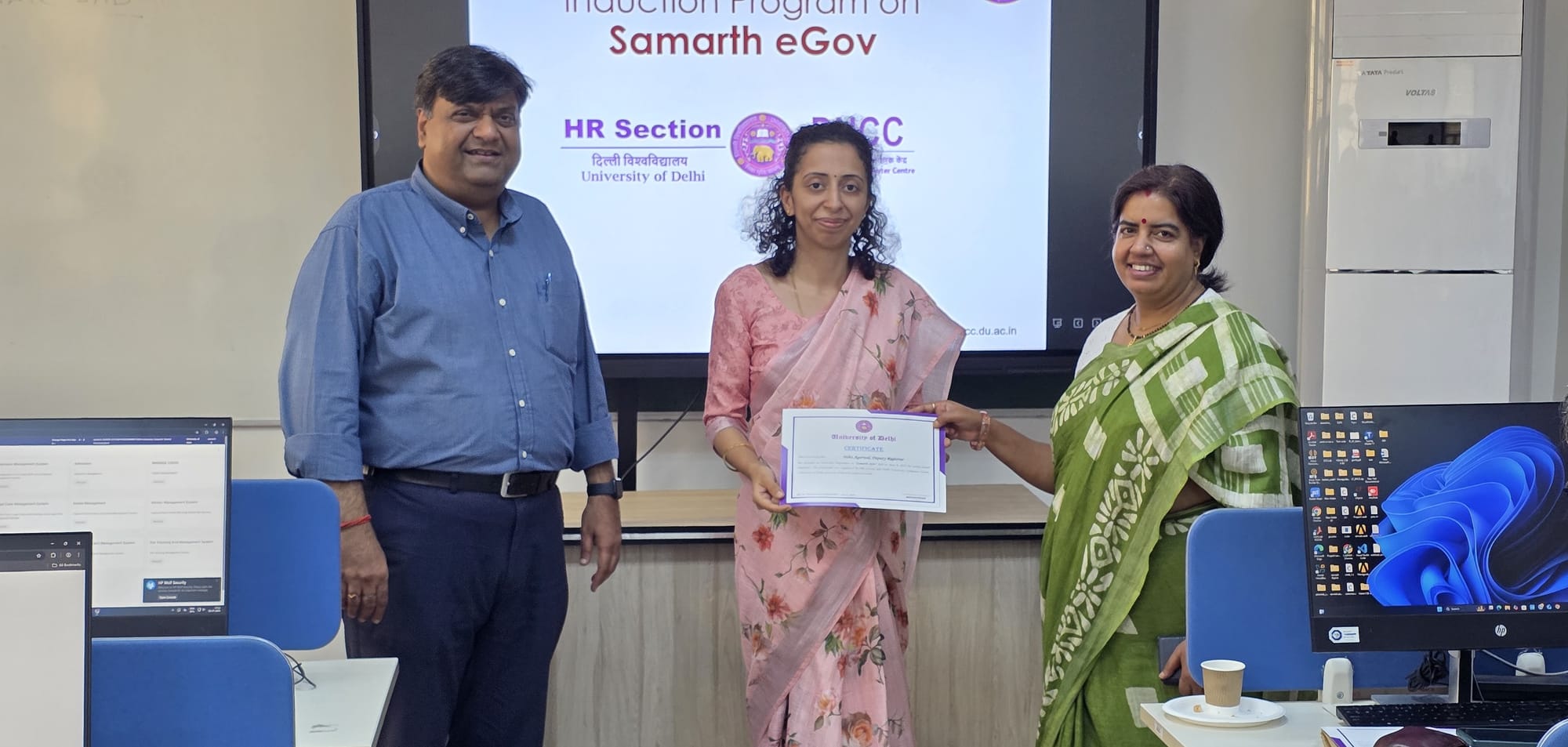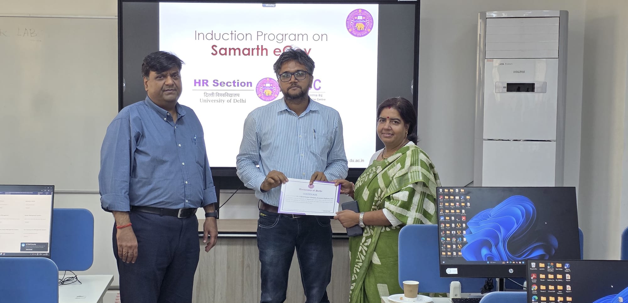 The HR Section, and the Delhi University Computer Centre organized an induction programme on Samarth eGov. The session was conducted for newly appointed Junior Engineers, Assistant Engineers, Deputy Registrars, and Assistant Professors from the Faculty of Technology to familiarize them with the university’s digital administrative platform.